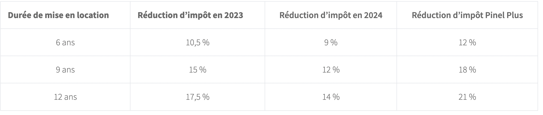 La réduction d'impôt offerte par la Loi Pinel varie en fonction de la durée de la location du bien. Ainsi, pour une location de 6 ans, la réduction d'impôt est de 10,5 %, pour 9 ans, elle est de 15 %, et pour 12 ans, elle atteint 17,5 %. Cependant, l'investissement maximum est plafonné à 300 000 €, et la réduction d'impôt est limitée à 52 500 € sur 12 ans.