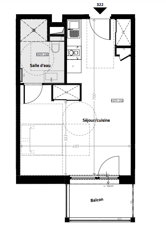 168 840€ Appt. Studio 33.06m2 0-RDC