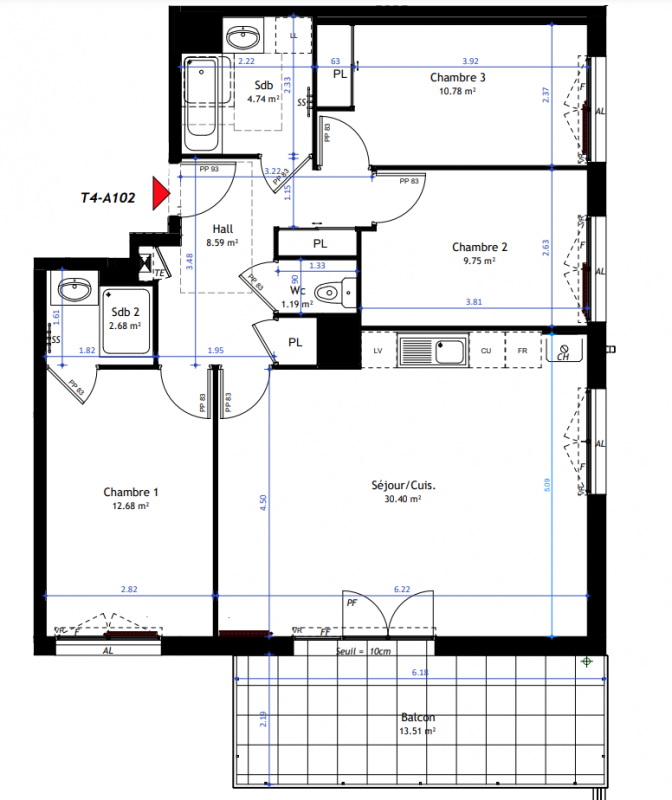 Les quatre pièces, quant à eux, proposent de véritables volumes familiaux, avec des superficies de plus de 80m2. Les chambres y sont confortables, la suite parentale bénéficie d’une intimité préservée et les espaces de vie sont conçus pour recevoir ou pour partager des moments conviviaux.