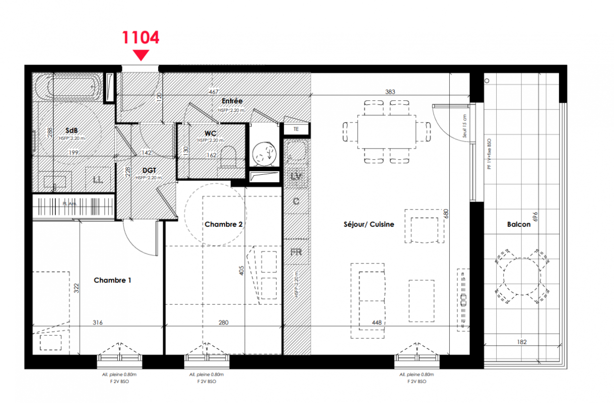 | Voir | Disponible | 346 000€ | 1103 | Appt. | T3 | 60m2 | 1er | Disponible | 346 000€ | Voir |