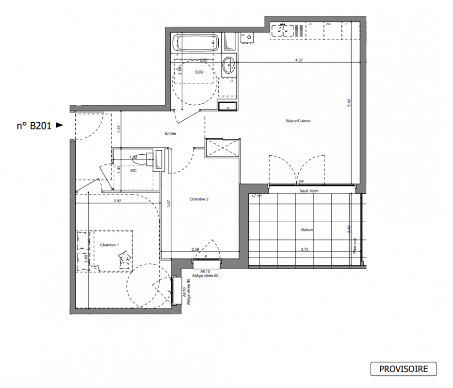 285 900€ Appt. T3 60.65m2 2ème
