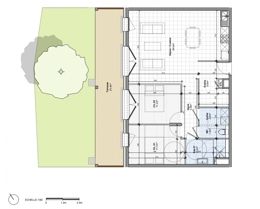 438 000€ Appt. T3 57m2 0-RDC