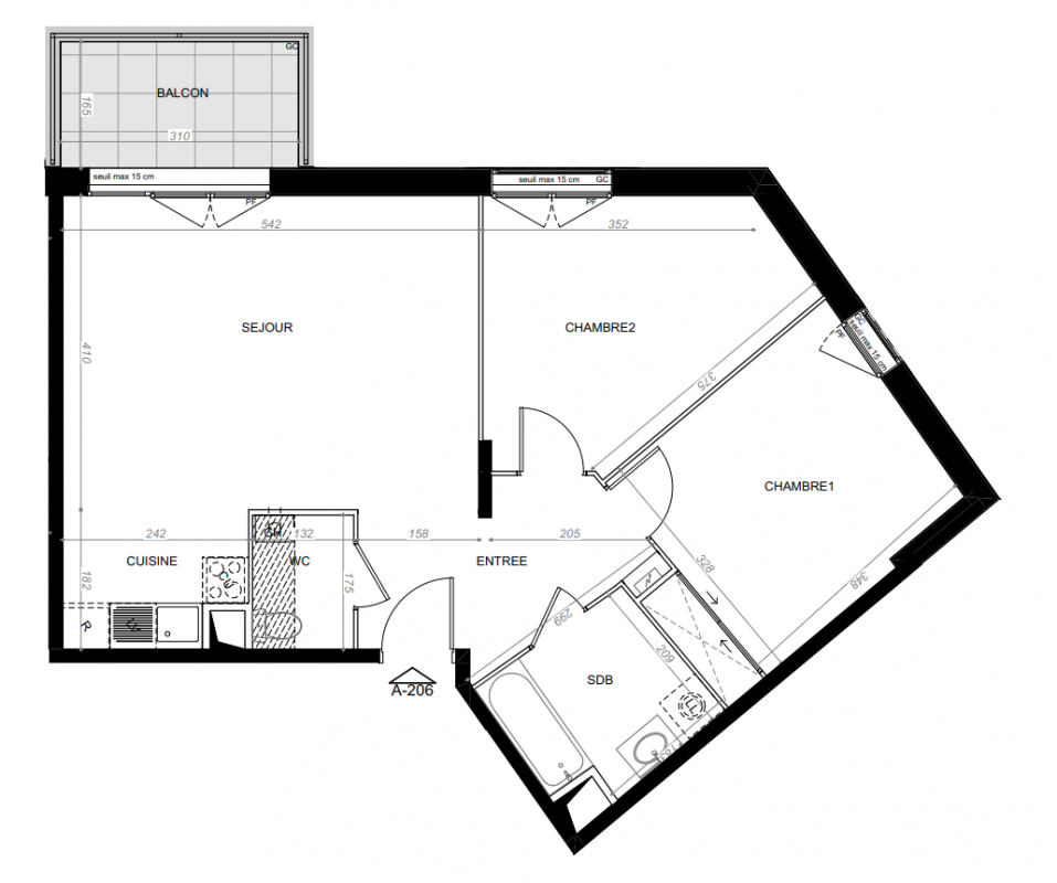 271 700€ Appt. T3 59.81m2 0-RDC