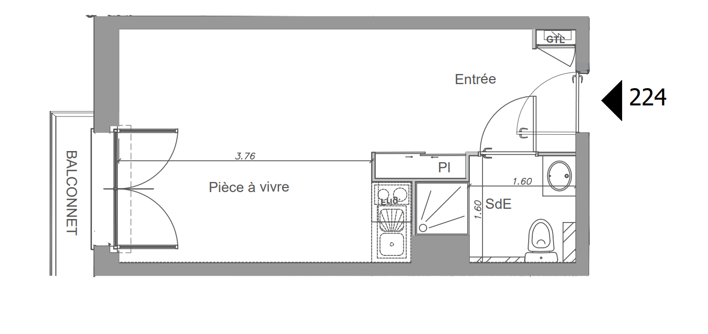 114 200€ Appt. Studio 19.91m2 1er