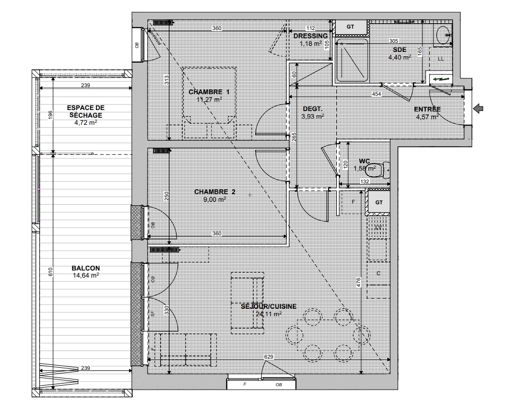 Les logements offrent des espaces de vie généreux et lumineux, souvent traversants ou à double orientation. Chaque appartement dispose de prolongements extérieurs et d'aménagements pensés pour le confort : rangements, cellier et optimisation des volumes.