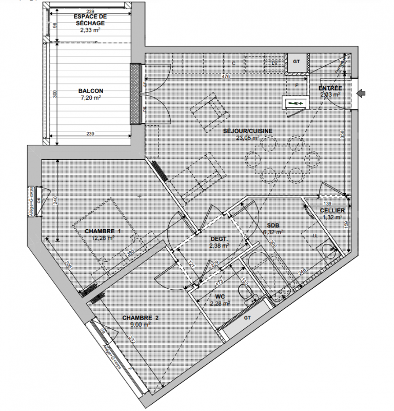 Les logements offrent des espaces de vie généreux et lumineux, souvent traversants ou à double orientation. Chaque appartement dispose de prolongements extérieurs et d'aménagements pensés pour le confort : rangements, cellier et optimisation des volumes.