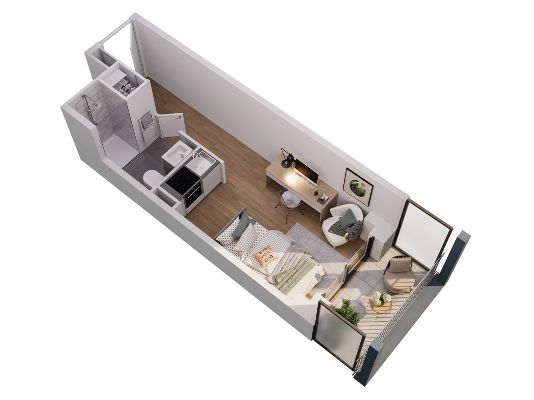 La future résidence STUDENT FACTORY offre un cadre de vie exceptionnel aux étudiants : des appartements confortables entièrement équipés et « prêts à vivre », des espaces communs adaptés aux études avec de nombreux services, ainsi qu'un emplacement de choix.