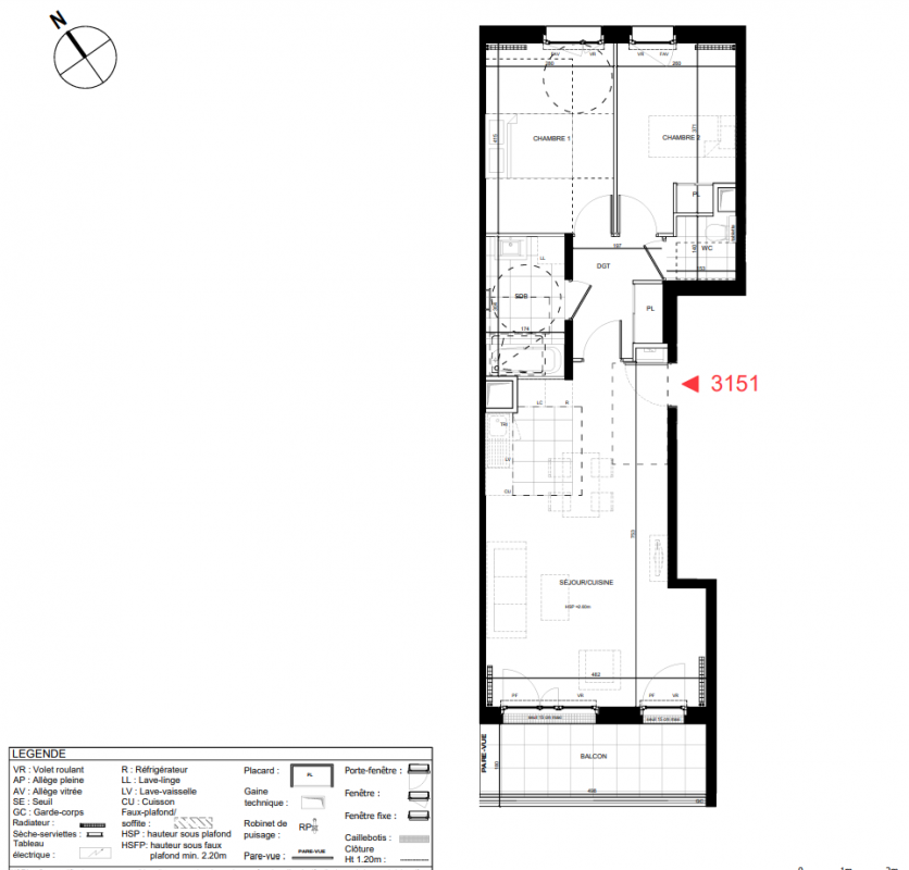 412 999€ Appt. T3 64m2 2ème