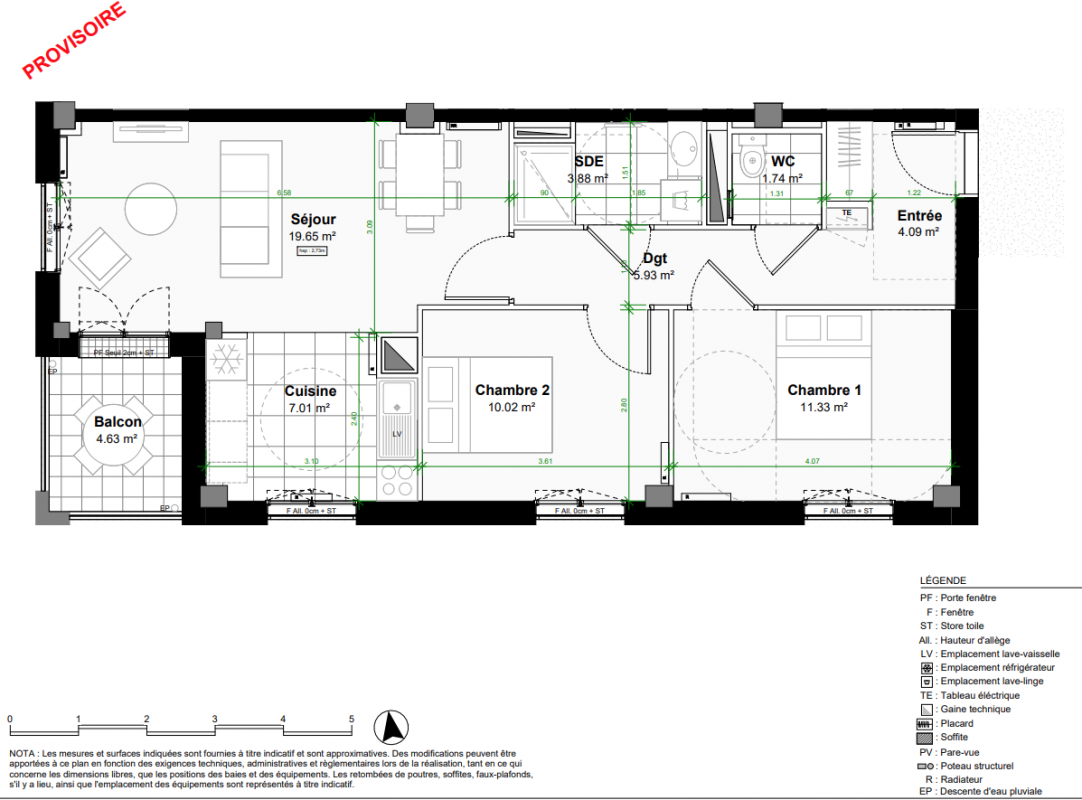 436 000€ Appt. T3 64.03m2 5ème