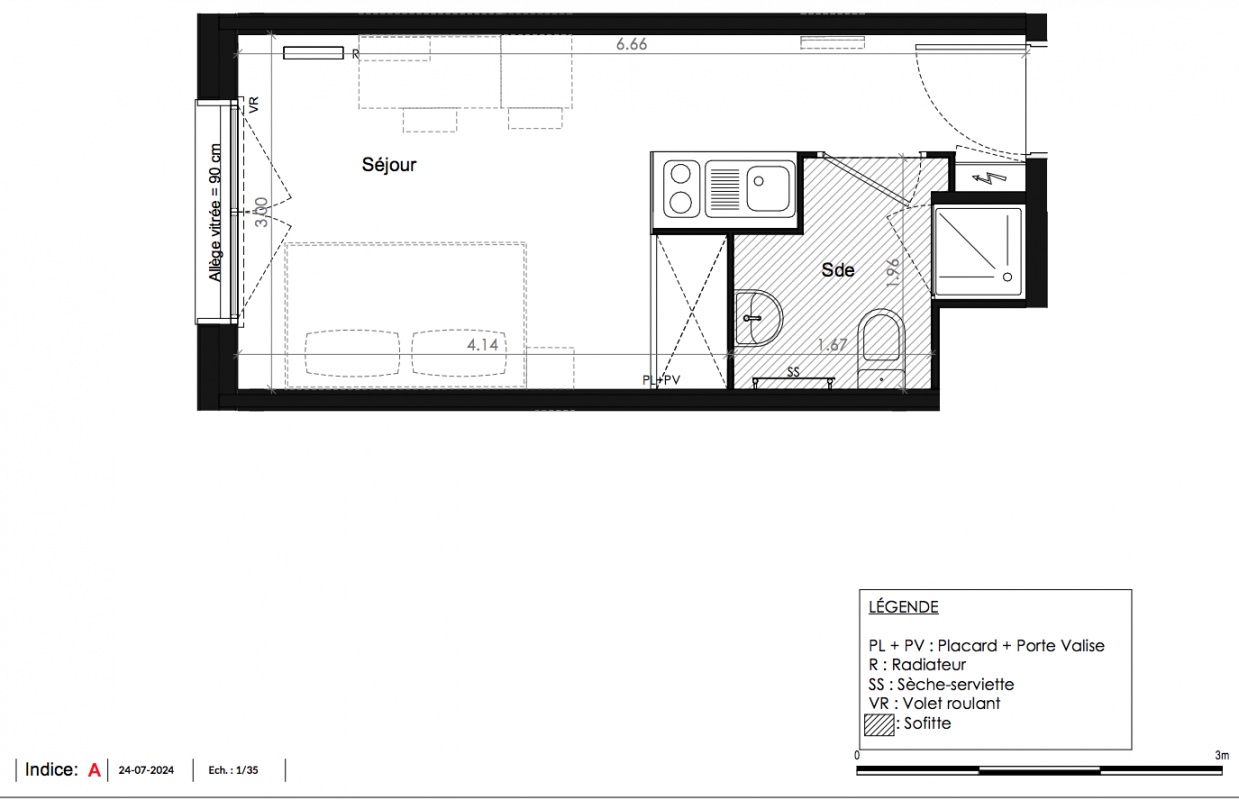 166 200€ Appt. Studio 18.63m2 3ème