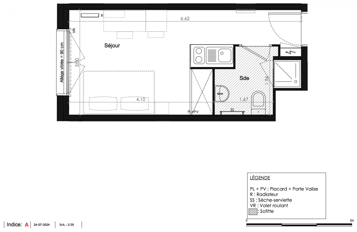 168 120€ Appt. Studio 18.85m2 3ème