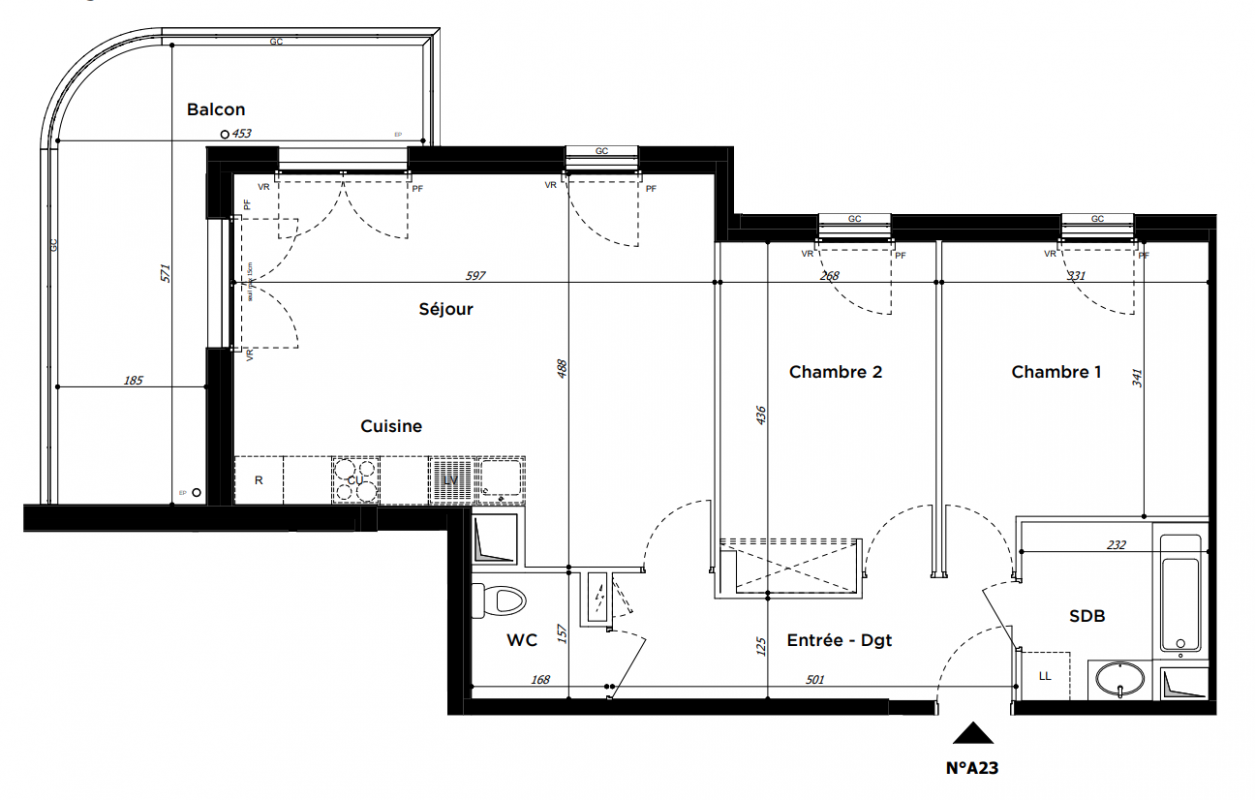472 100€ Appt. T3 65.02m2 6ème