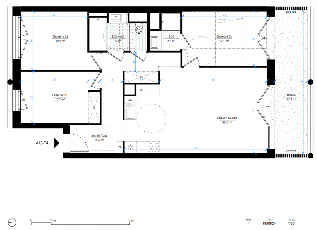 436 650€ Appt. T4 78.2m2 3ème