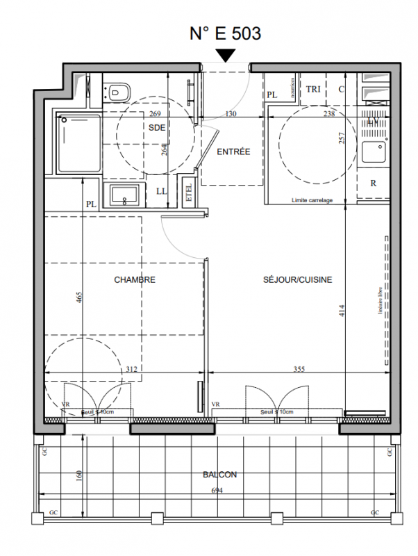 317 000€ Appt. T2 42.6m2 3ème