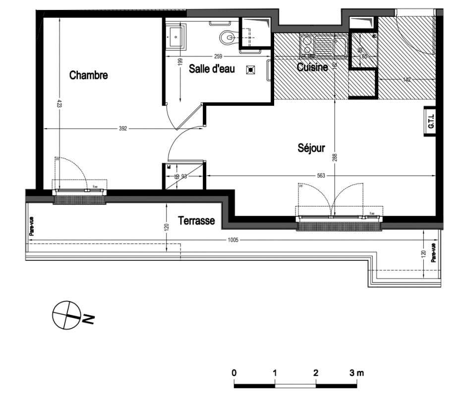 366 441€ Appt. T2 43.25m2 3ème