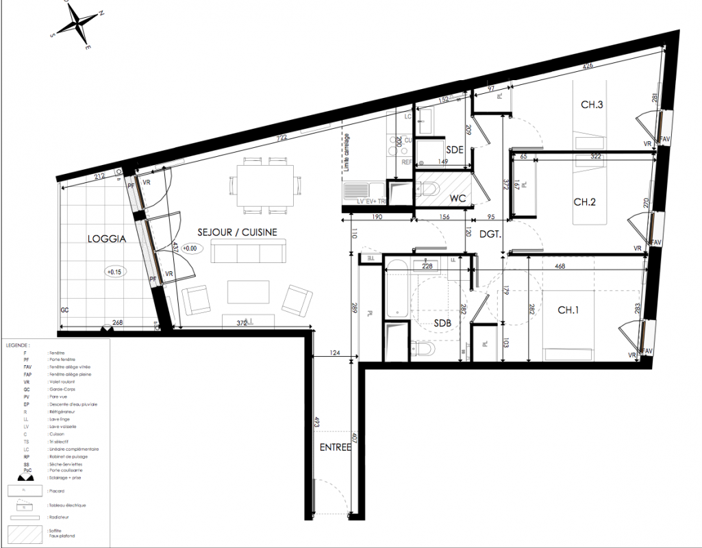 444 000€ Appt. T4 76.17m2 3ème
