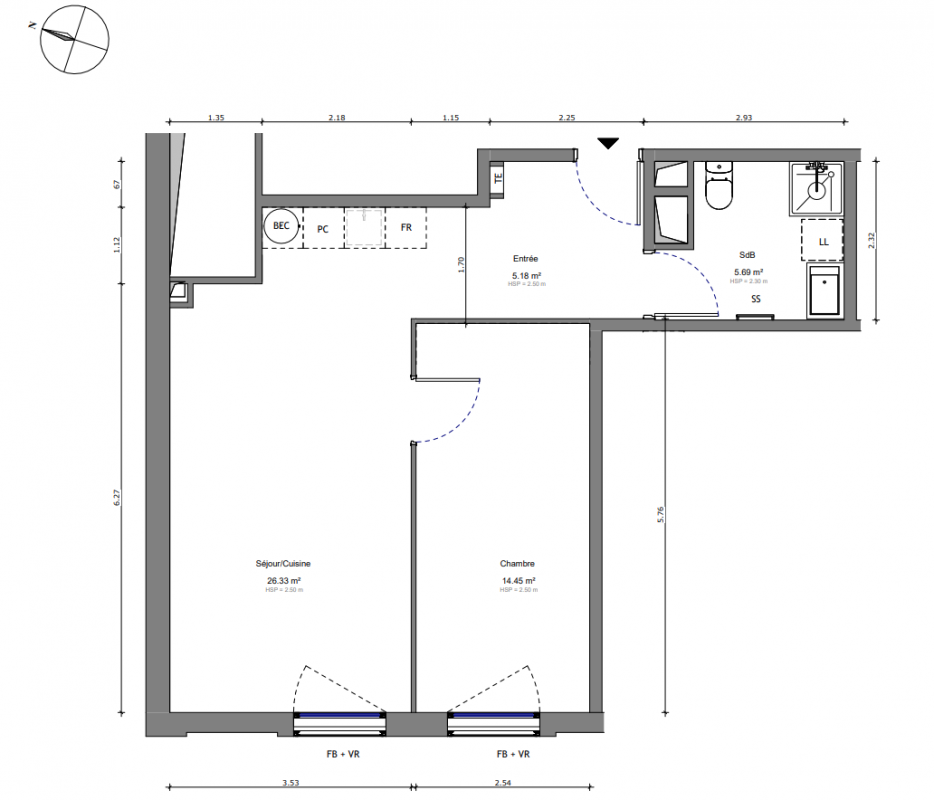 371 000€ Appt. T2 49.27m2 2ème