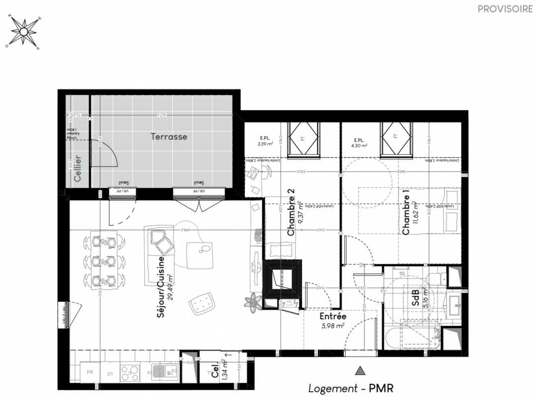 *Les frais de notaire sont pris en charge par la SCI, hors frais d'hypothèque, de garantie bancaire et de règlement de copropriété. **Cuisine offerte comprenant : plaque à induction, hotte aspirante, four, évier et mitigeur, plan de travail, crédences, plinthes et poignées des portes. Meubles hauts et bas selon la configuration du plan de vente. Fourniture et
