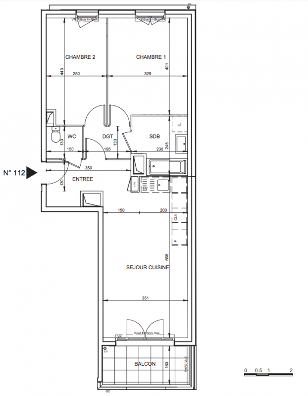 323 100€ Appt. T3 60.8m2 2ème