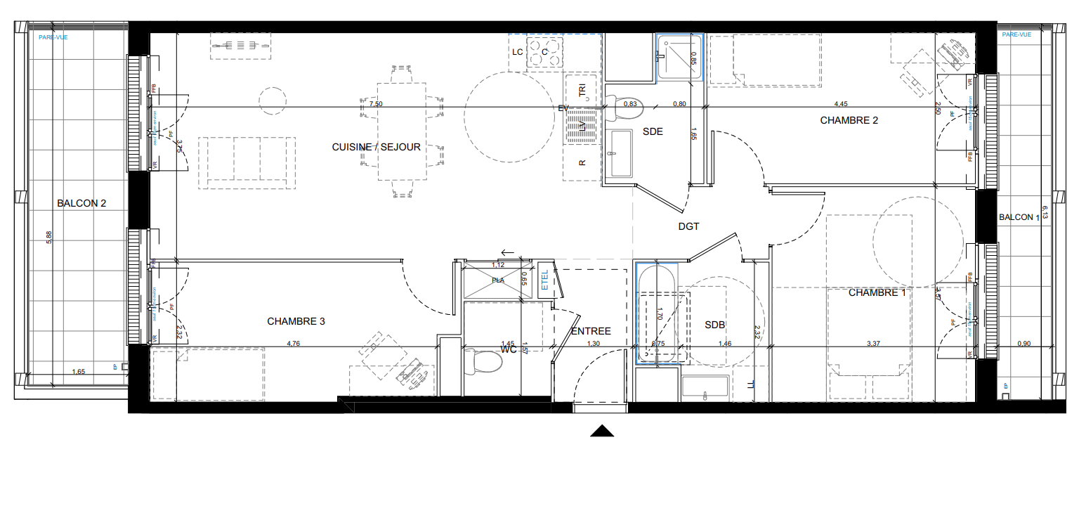Chaque logement bénéficie d'un espace extérieur privatif (balcon, terrasse ou jardin), conçu comme un prolongement naturel du logement.