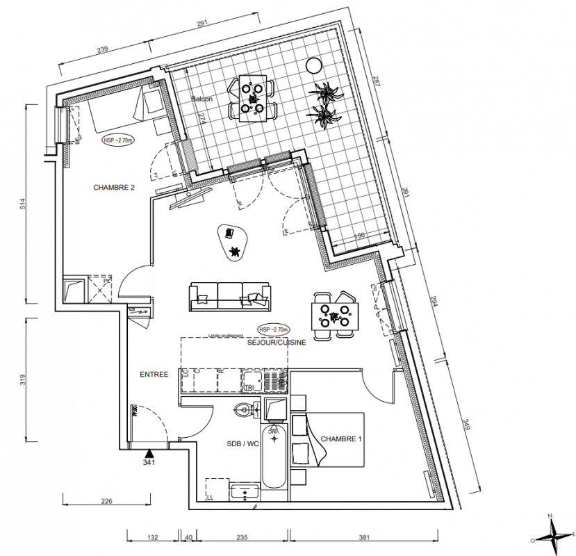 294 597€ Appt. T3 61.26m2 0-RDC