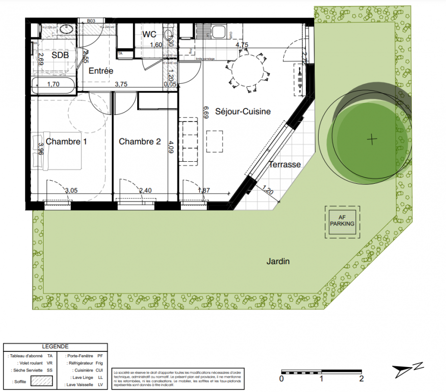 - Surfaces généreuses prolongées d'une terrasse‐jardin ou d'un balcon