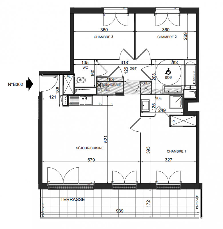 413 416€ Appt. T4 81m2 2ème