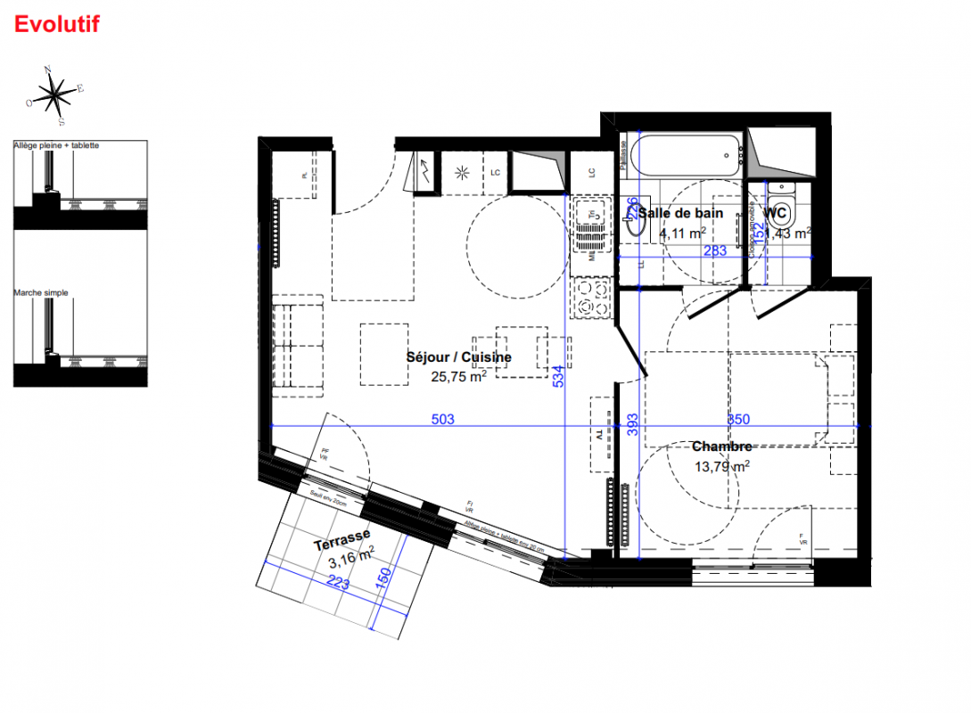 | Voir | Optionné | 275 000€ | E1 B103 | Appt. | T2 | 41.78m2 | 0-RDC | Optionné Mais pas encore vendu 😉 | 275 000€ | Voir |