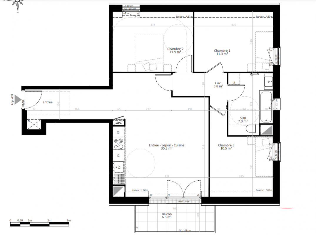 Tous les logements disposent d'un balcon (jusqu'à 9 m²) et de plans optimisés avec cuisines ouvertes.