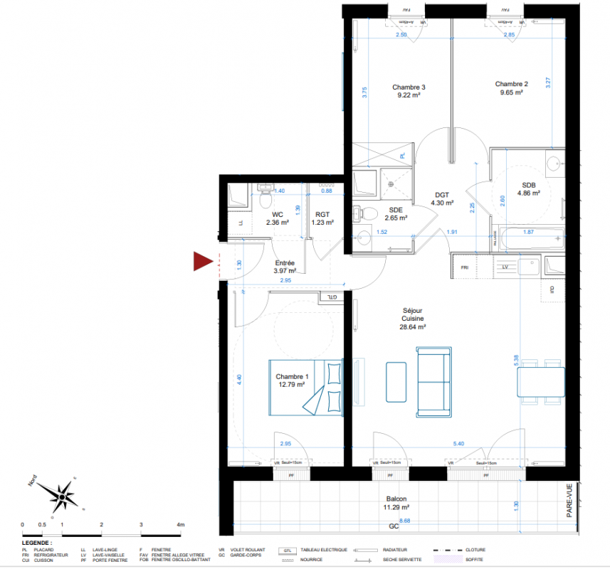285 000€ Appt. T4 79m2 3ème