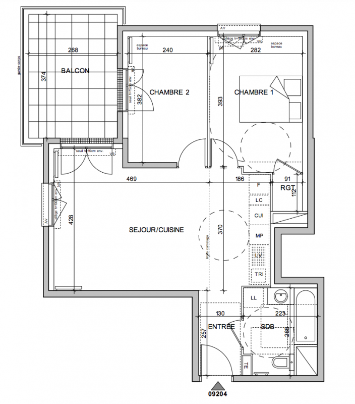 307 000€ Appt. T3 59.73m2 1er