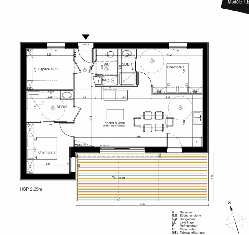 371 057€ Appt. T3 76.1m2 0-RDC