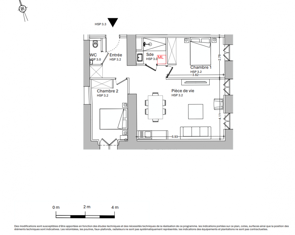 639 000€ Appt. T3 73.8m2 4ème