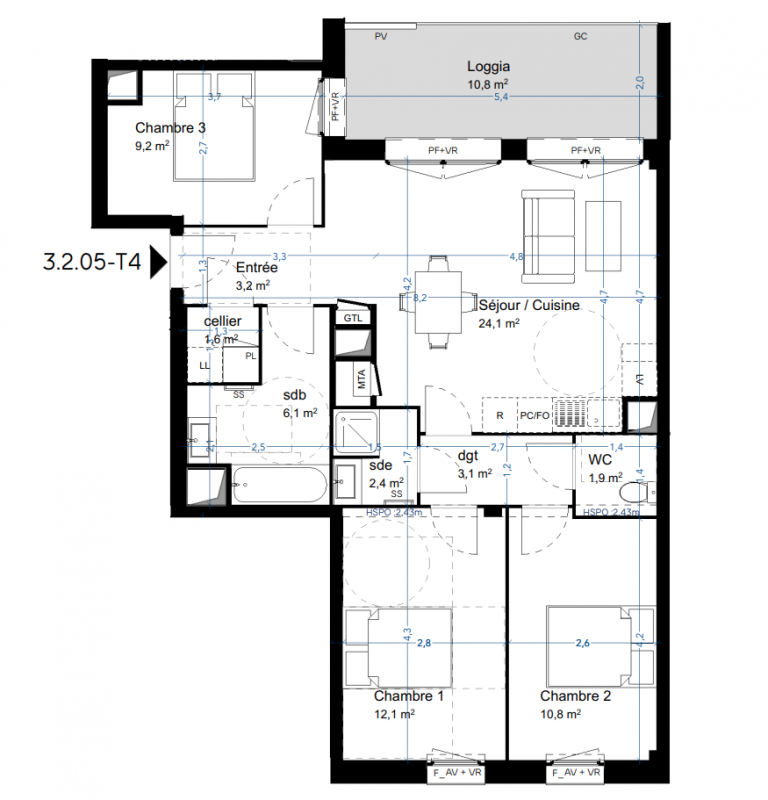 343 999€ Appt. T3 74m2 4ème