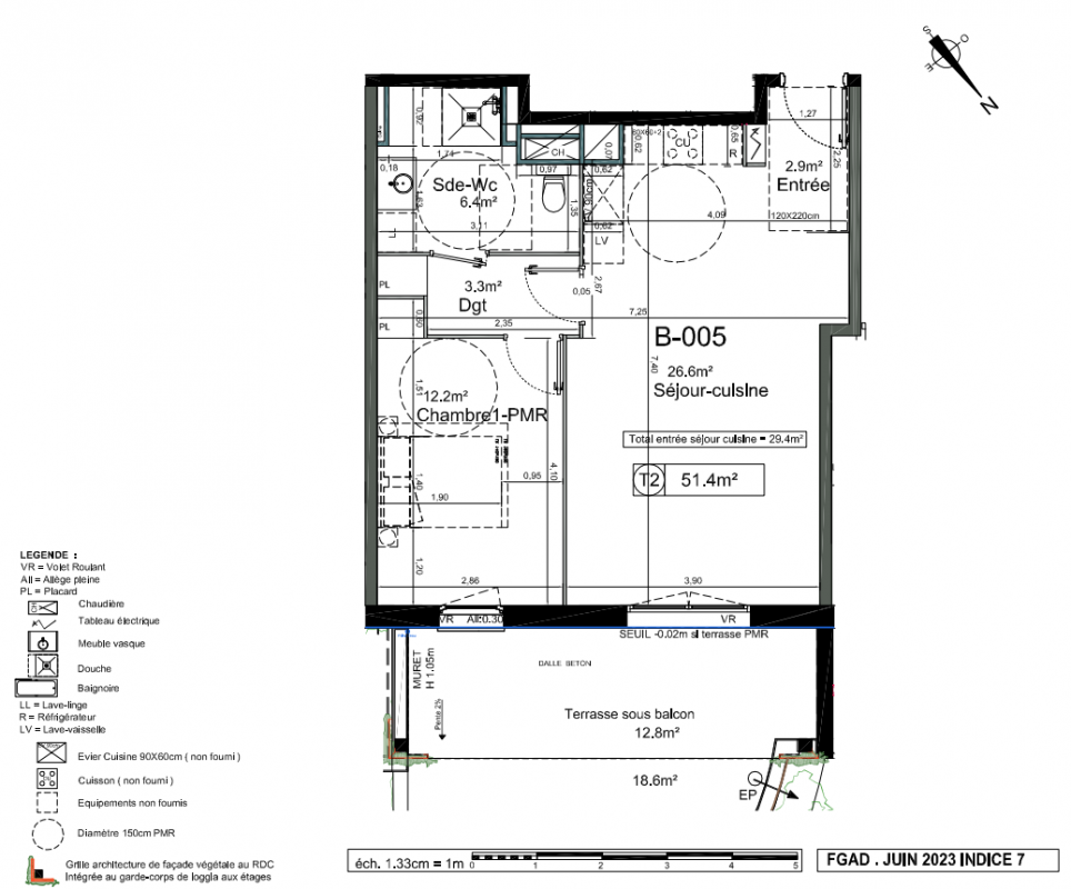 162 800€ Appt. T2 49.2m2 0-RDC