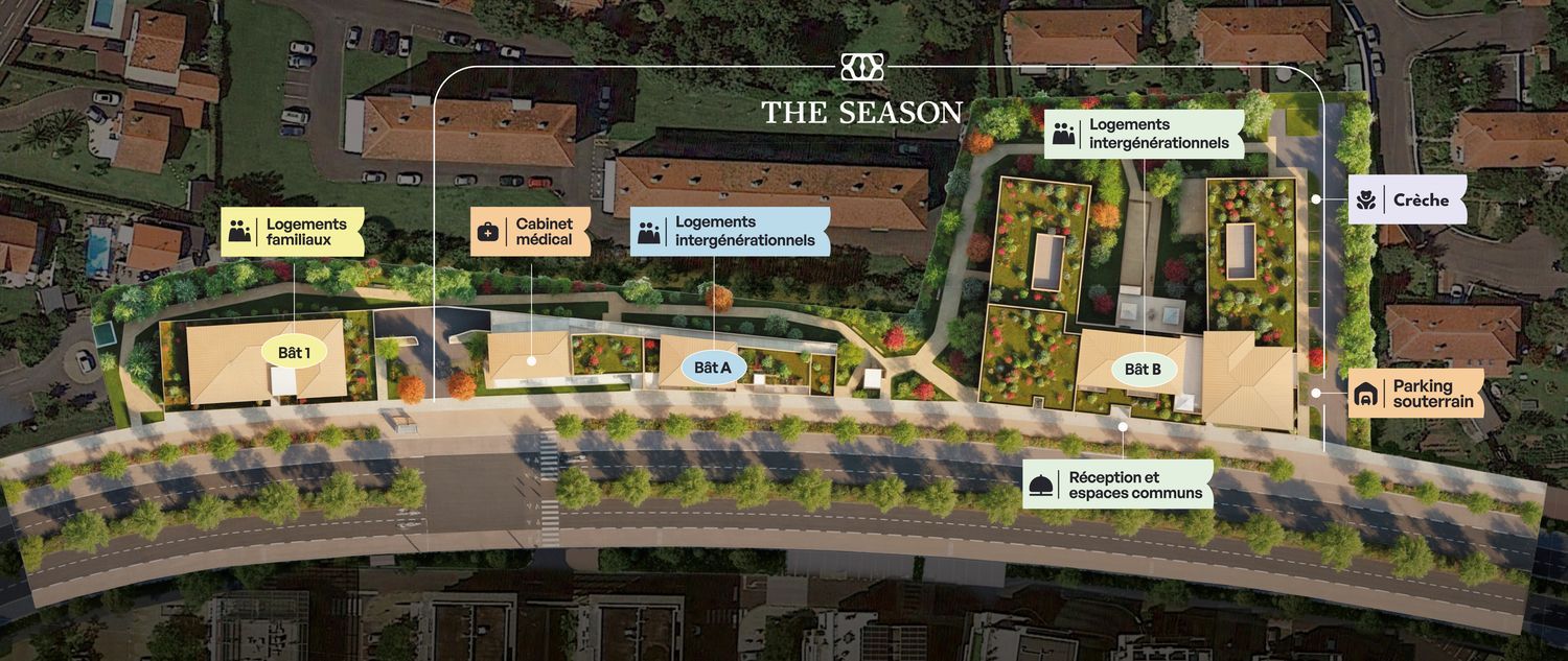 Le programme immobilier neuf "THE SEASON" situé dans la région Nouvelle Aquitaine (Pyrénées-Atlantiques) vous offre 24 maisons neuves de type Studio (T1) à partir de 119 900 €, 2 pièces (T2) à partir de 233 100 €, 3 pièces (T3) à partir de 368 000 €.