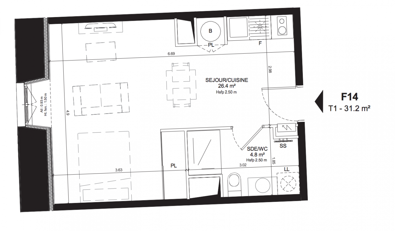 278 200€ Appt. Studio 32.4m2 3ème
