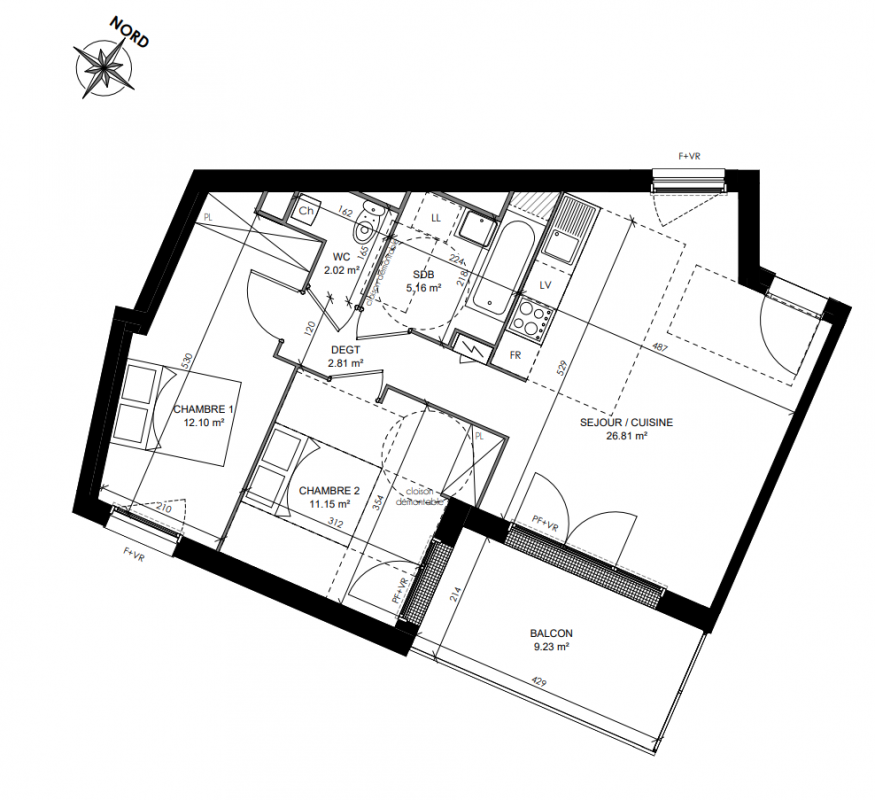 - Appartements 3 pièces : Des volumes de vie confortables allant de 59,50 m² à