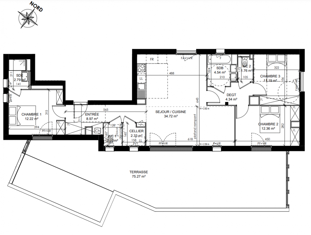 - Appartements 3 pièces : Des volumes de vie confortables allant de 59,50 m² à