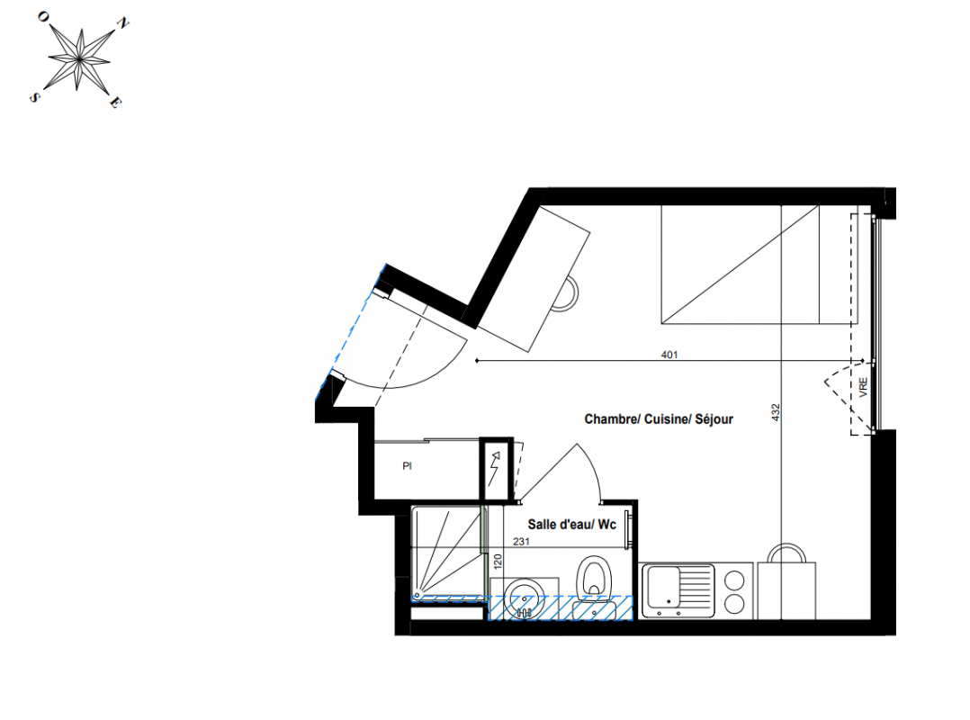 163 704€ Appt. Studio 23.03m2 0-RDC