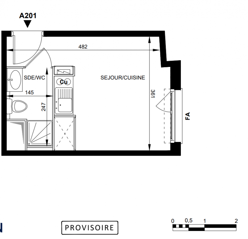 162 200€ Appt. Studio 19.58m2 0-RDC