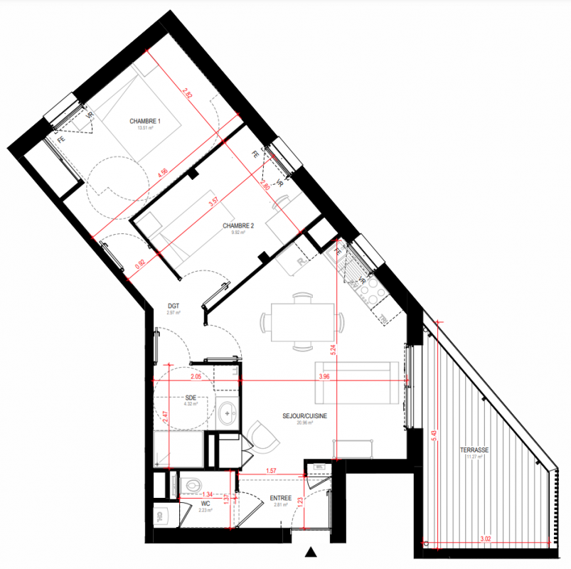 230 000€ Appt. T3 57.06m2 0-RDC