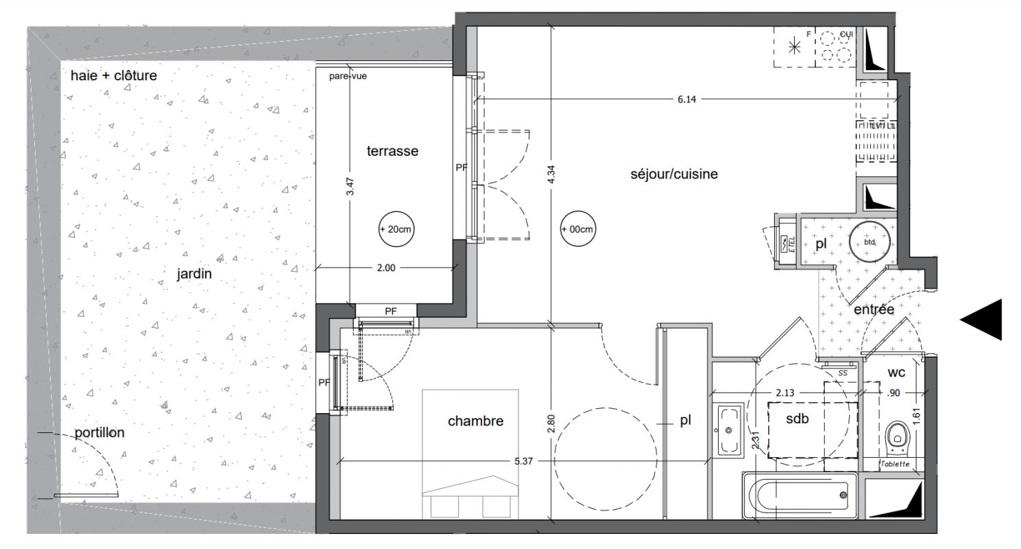 229 000€ Appt. T2 44.03m2 0-RDC