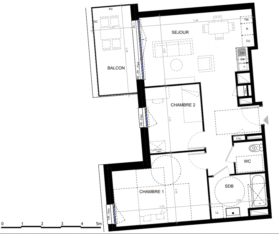 283 400€ Appt. T3 59.88m2 2ème