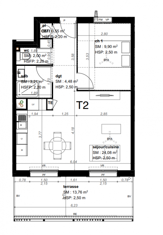 172 741€ Appt. T2 44.9m2 1er